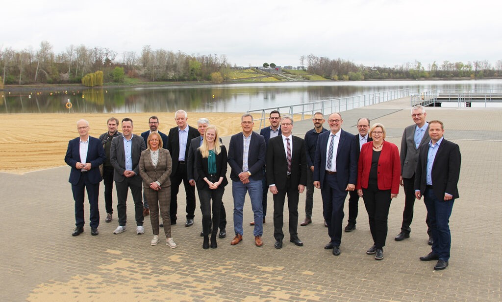 FOTO:  Folgende Kommunen, Kreise und Verbände sind Mitglied der Hochwasserschutzkooperation Erft (Stand: November 2022): Erftverband, Rhein-Erft-Kreis, Kreisstadt Bergheim, Stadt Erftstadt, Kolpingstadt Kerpen, Kreis Euskirchen, Stadt Bad Münstereifel, Stadt Euskirchen, Stadt Mechernich, Eifelgemeinde Nettersheim, Gemeinde Weilerswist, Stadt Zülpich, Rhein-Sieg-Kreis, Stadt Meckenheim, Stadt Rheinbach, Gemeinde Nörvenich, Gemeinde Vettweiß, Gemeinde Swisttal und die Nationalparkstadt Heimbach. Das Foto entstand bei der Gründungsveranstaltung am Zülpicher Wassersportsee. Foto: W. Andres