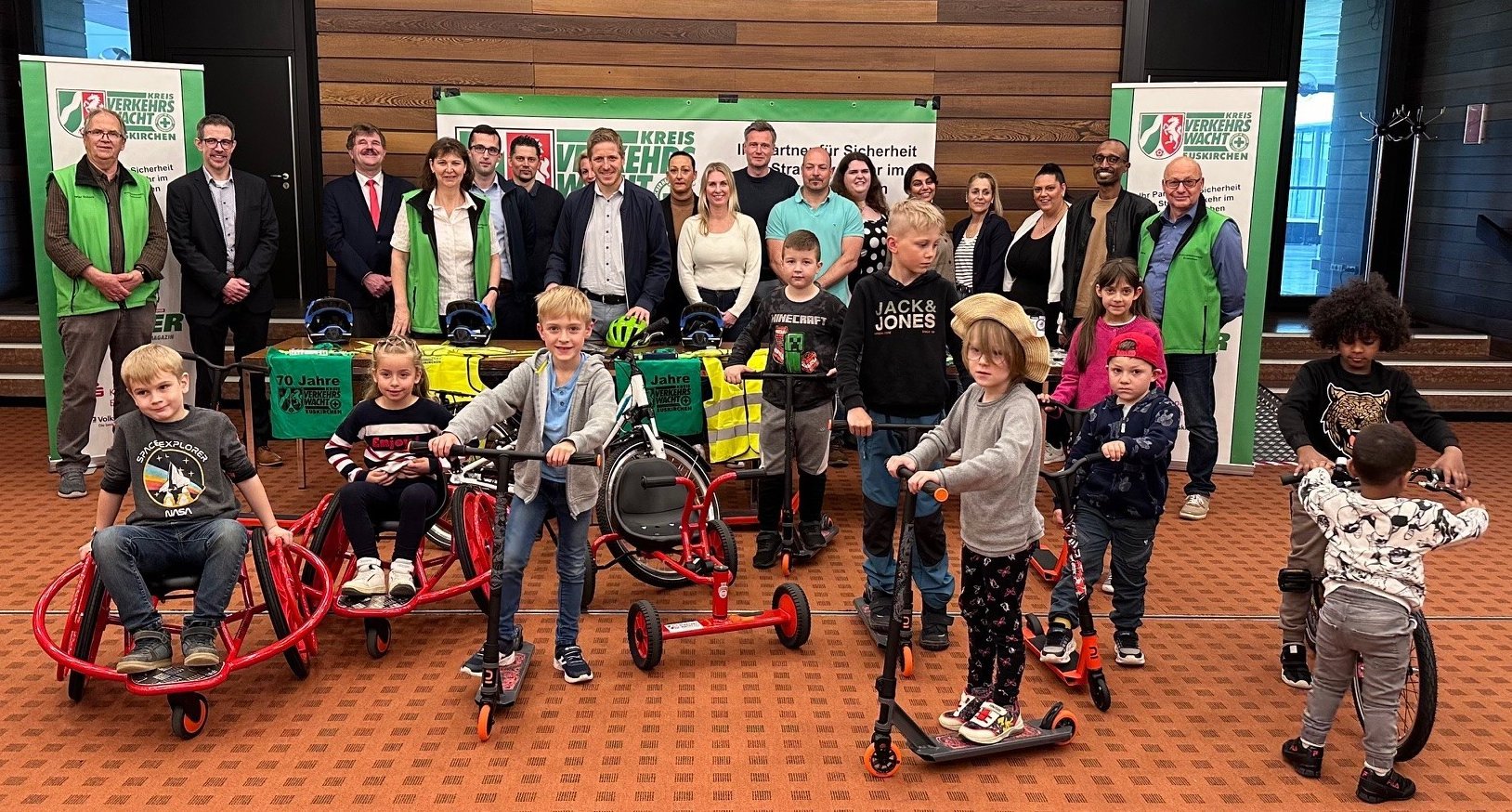 Die Kreisverkehrswacht Euskirchen e.V. ist auch in diesem Jahr wieder engagiert unterwegs, um Kindergärten und Schulen zu unterstützen. Ziel ist es, die Verkehrssicherheit der Kinder und Jugendlichen zu verbessern. Dazu werden unter anderem Kettcars, Roller und Fahrräder zur Verfügung gestellt, um die Motorik der Kinder zu fördern. Außerdem werden die Kosten der Radfahrausbildung im 4. Schuljahr und die Aktion „Sicher zur Schule“ in den Kitas in voller Höhe übernommen.