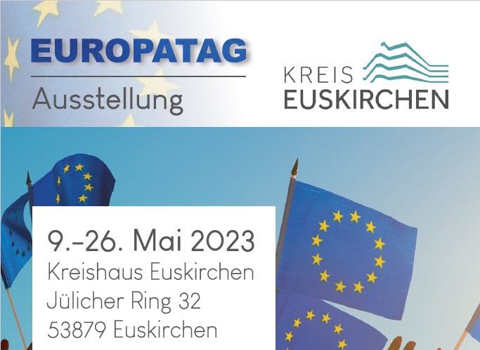 Im Rahmen des europaaktiven Engagements des Kreises Euskirchen eröffnet Landrat Markus Ramers anlässlich des Europatags eine Ausstellung und lädt dazu herzlich ein. Termin: Dienstag, 9. Mai 2023 um 11:30 Uhr im Foyer des Kreishauses (Jülicher Ring 32).