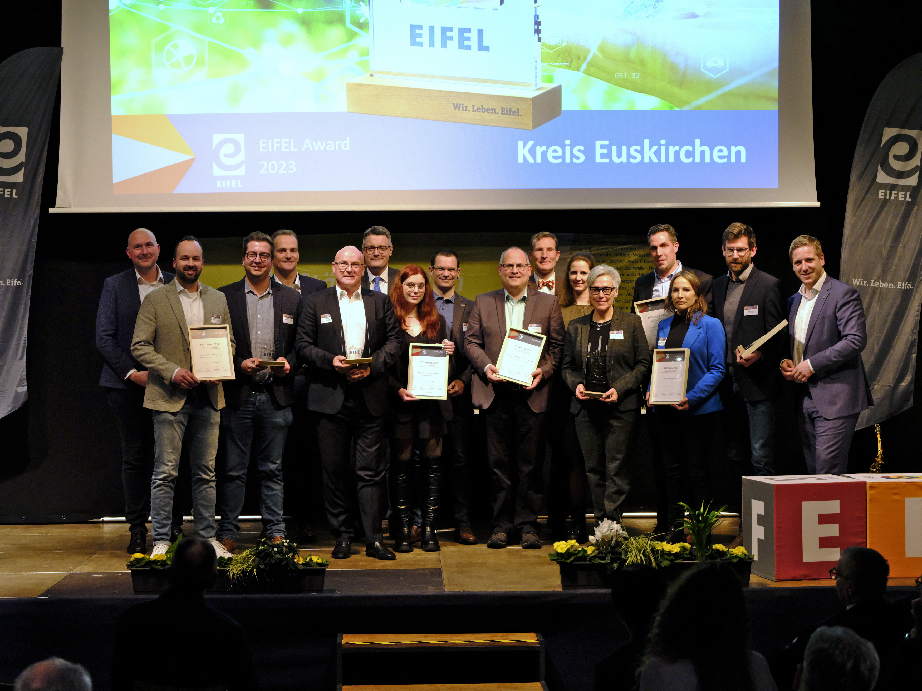 Der EIFEL Award 2023 geht diesmal an insgesamt 36 Unternehmen aus der ganzen Eifel, die eines gemeinsam haben: Sie haben vorbildliche Konzepte und Ideen, um das große Zukunftsthema Nachhaltigkeit in ihren Betrieben und für ihre Kunden konkret werden zu lassen. Auch der Kreis Euskirchen war prominent vertreten: Preise gingen an: