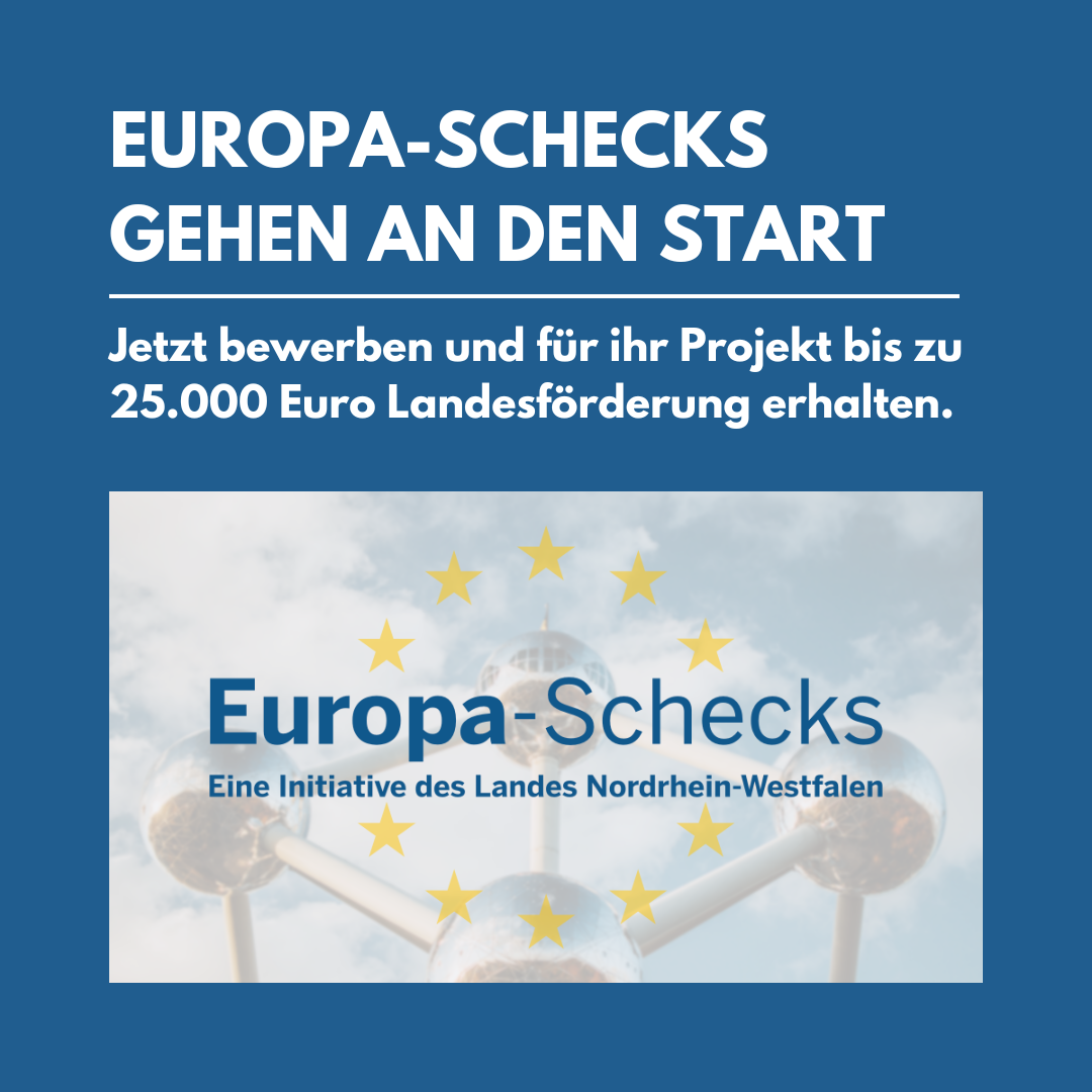 Die Europa-Schecks sollen eine unkomplizierte Möglichkeit bieten, auch für kleinere Projekte ohne großen Aufwand eine Förderung zu erhalten. Vereine, Kommunen, Schulen, Hochschulen, außerschulische Einrichtungen und Institutionen in Nordrhein-Westfalen sind aufgerufen, sich an der neuen Initiative zu beteiligen. Es kann eine finanzielle Unterstützung von bis zu 25.000 Euro für Projekte beantragt werden. Insgesamt stellt das Land eine Million Euro für die Europa-Schecks zur Verfügung.