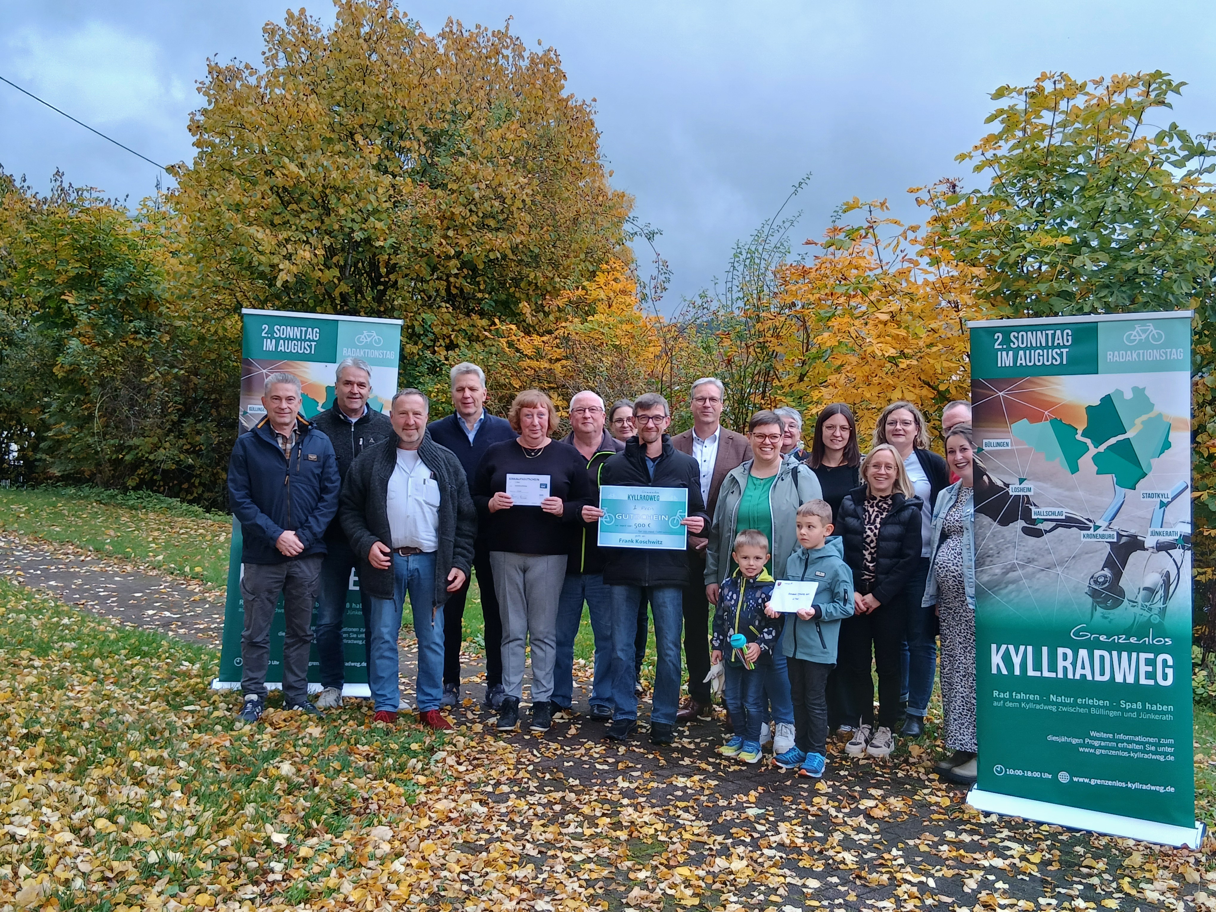 Mehr als tausend Radlerinnen und Radler haben im August am 9. Radaktionstag „Grenzenlos Kyllradweg“ auf der 30-Kilometer-Strecke zwischen Büllingen und Jünkerath teilgenommen. Bei idealem Radlerwetter warteten an sechs Aktionspunkten vielfältige Angebote. Für das Gewinnspiel landeten 514 gültige Startkarten in der Lostrommel; 67 Preise – darunter Radwanderkarten und Kaffeebecher – sind bereits übergeben oder versandt.