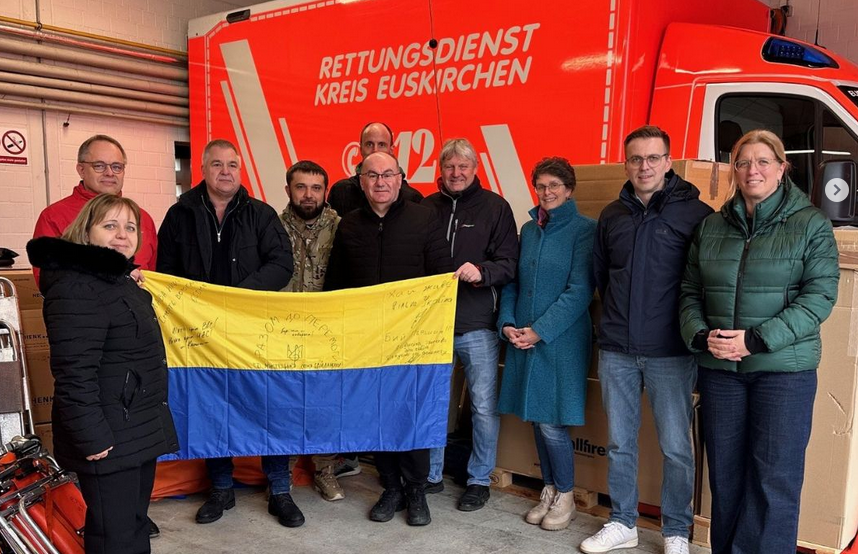 Diese Materialien sind für den Einsatz in unmittelbarer Frontnähe unerlässlich und können dort noch viel Gutes bewirken. Durch die enge Zusammenarbeit mit dem Deutschen Roten Kreuz im Kreis Euskirchen konnte diese Aktion unbürokratisch und schnell realisiert werden. Dank gilt allen, die mitgedacht, geplant und unterstützt haben. Zum Abschluss betonten die ukrainischen Gäste ihre tiefe Dankbarkeit gegenüber der deutschen Bevölkerung, dem Kreis und dem DRK für die weiter bestehende Spendenbereitschaft. Übrigens: Ein im Dezember 2022 gespendeter Rettungswagen ist noch immer täglich im Einsatz und leistet unverzichtbare Hilfe vor Ort!