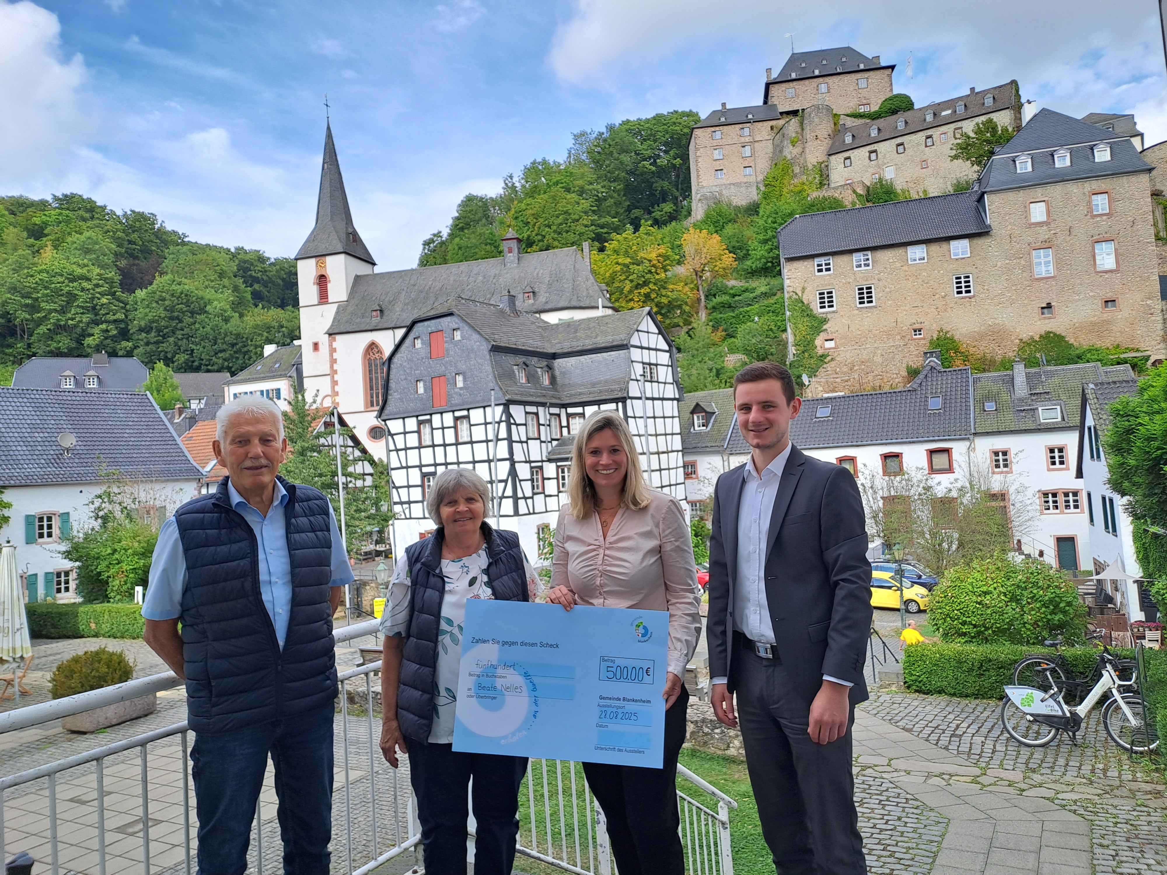 Beate Nelles war gemeinsam mit ihrem Mann, den Kindern und Enkelkindern unterwegs und sammelte stolze acht Stempel. Dass sich das sportliche Engagement lohnte, zeigte sich bei der Preisübergabe: Blankenheims Bürgermeisterin Jennifer Meuren und Roman Sohnius, stellvertretender Vorstand der Kreissparkasse Euskirchen, überreichten ihr den Hauptpreis. „Im Rahmen der Kultur- und Sportstiftung der Kreissparkasse Euskirchen freuen wir uns sehr, ein nachhaltiges Projekt wie die Tour de Ahrtal zu unterstützen“, betonte Sohnius.