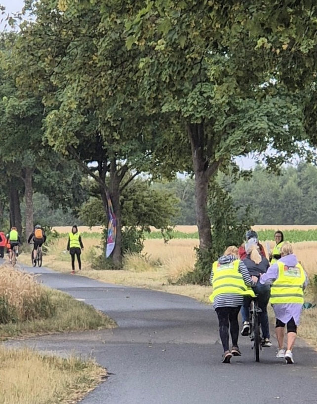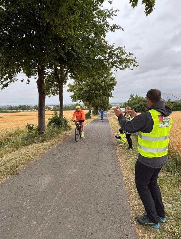 Mit viel Getöse und Spaß wurden die Teilnehmenden an der Steigung Richtung Niederkastenholz dabei unterstützt die Bergetappe zu überwinden.