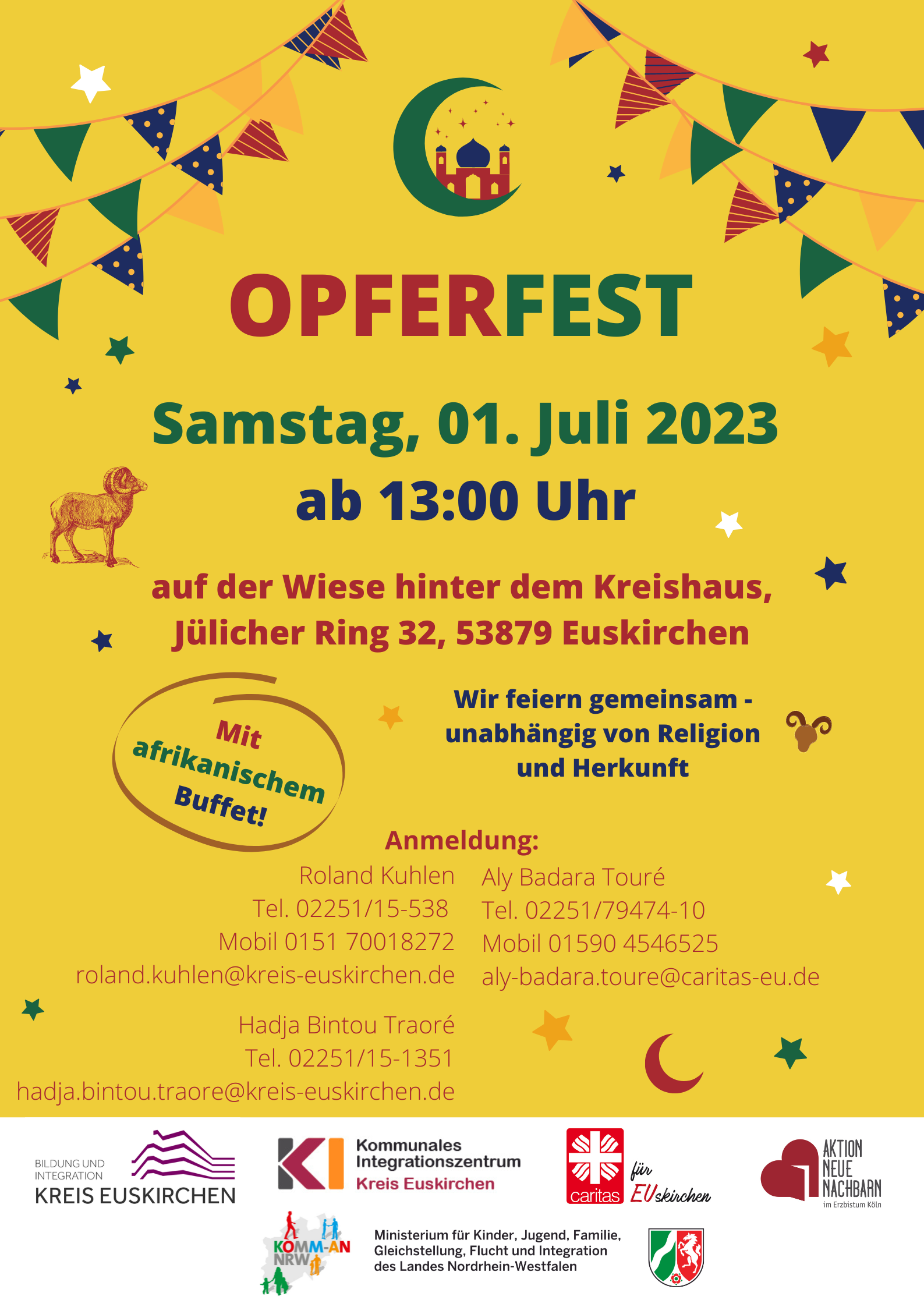 Wir feiern gemeinsam, unabhängig von Religion und Herkunft mit einem afrikanischen Buffet.