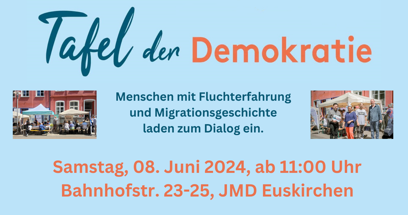 Demokratische Werte? Vorteile einer Demokratie? Möglichkeiten der Beteiligung? Wie sieht mein Beitrag dazu aus? Über diese und andere Fragen möchten wir gerne mit Ihnen sprechen. Tauschen Sie sich mit Nachbarn, Freundinnen, Freunden und Fremden aus. Demokratie bedeutet Vielfalt.