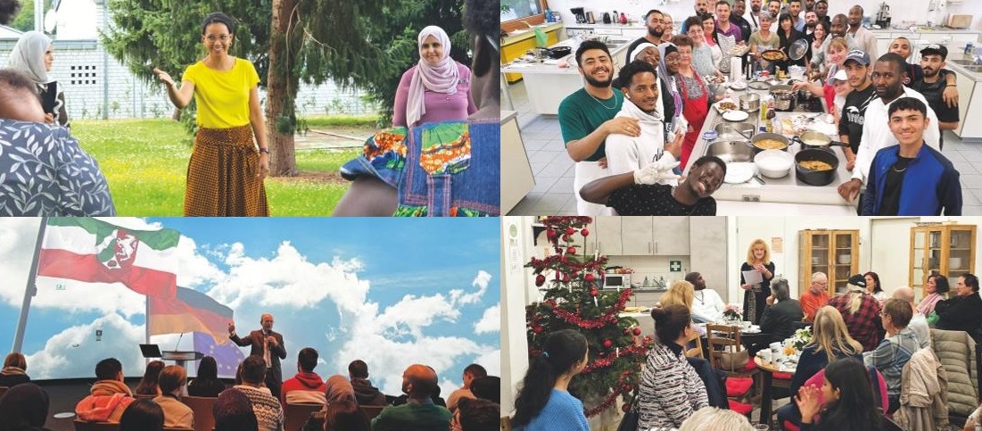 Angeboten werden seit Januar 2016 Info- und Länder-Abende, Ausstellungen, Austauschrunden, Workshops und Exkursionen. Die Veranstaltungen sind für alle, die sich von den Themen Flucht, Migration und Integration angesprochen fühlen. Die Begegnung zwischen alten und neuen Nachbarn ist dabei ausdrücklich gewünscht und beabsichtigt. Weiterhin gibt es Angebote, um ehrenamtliches Engagement durch Begleitung und Austausch zu unterstützen.