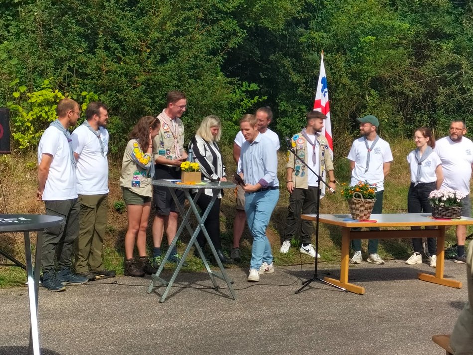 Auszeichnung für die Leiter des Pfadfinderstamm Burgfalken Blankenheim – Gesicht des Ehrenamts im September. Die Deutsche Pfadfinderschaft ist ein Verband indem Kinder und Jugendliche von jungen und jung gebliebenen Erwachsenen geleitet werden.