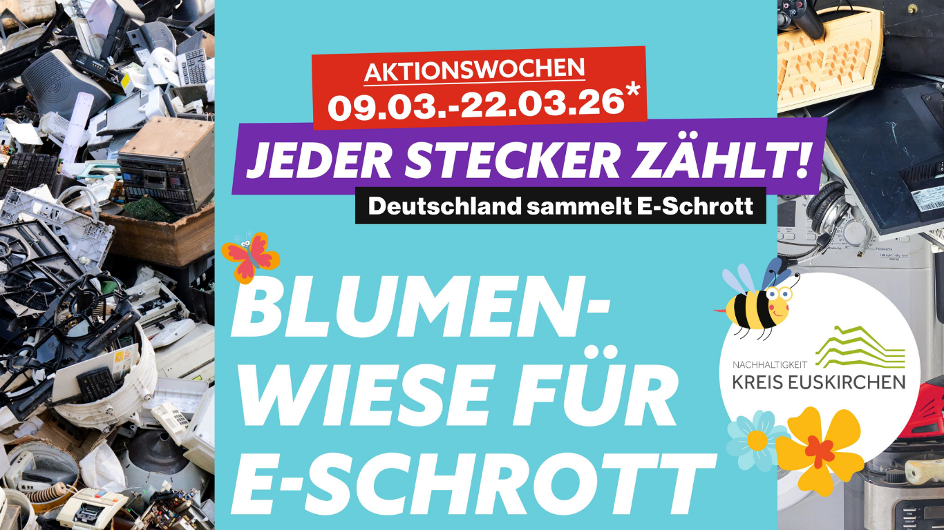 Vom Montag den 9. März bis Samstag, den 21. März 2026 bekommen alle Bürgerinnen und Bürger, die ein oder mehrere Elektroaltgeräte am Abfallwirtschaftszentrum Mechernich während der Öffnungszeiten abgeben, ein Päckchen regionales Wildblumensaatgut…