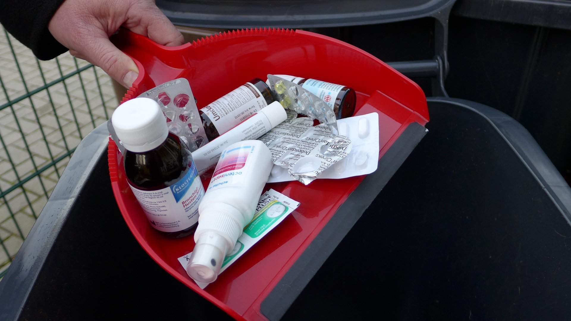 Viel zu oft gelangen Medikamente über Waschbecken und Toiletten in die Gewässer. Diese werden dadurch unnötig belastet. Alte und nicht mehr benötigte Medikamente gehören in die graue Restmülltonne.