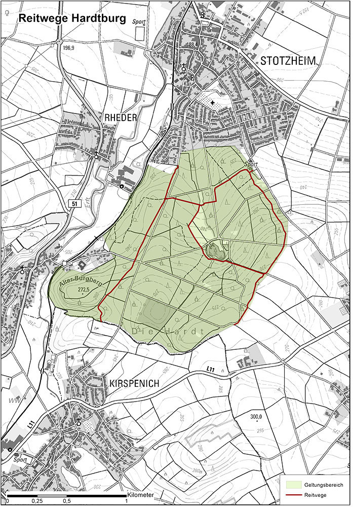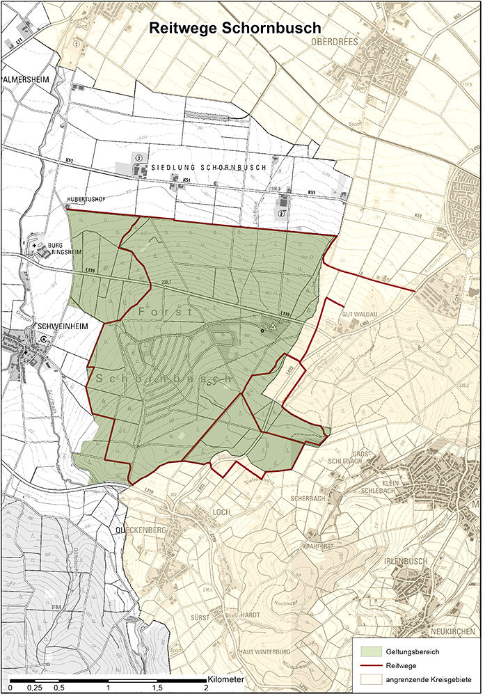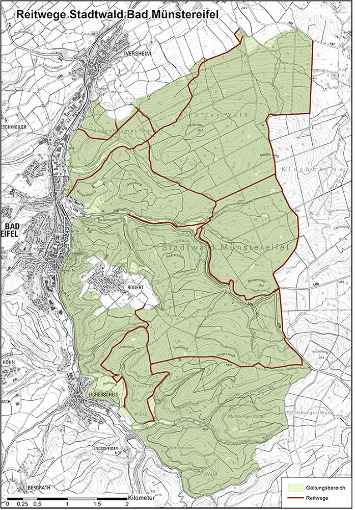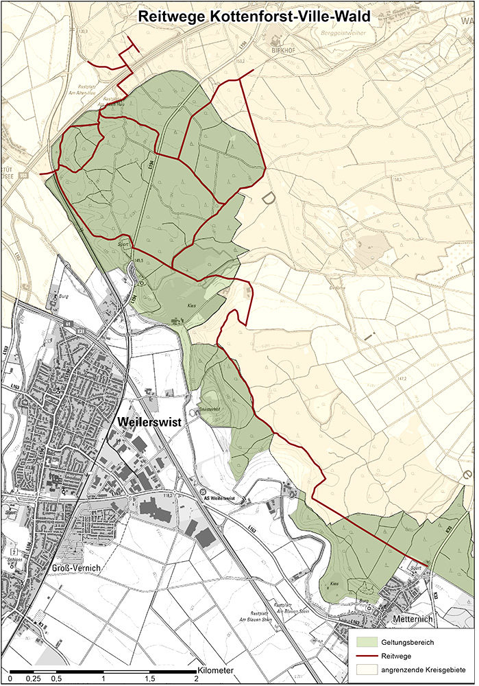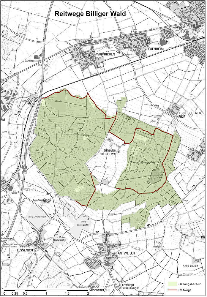 Für die folgenden Waldbereiche hat die Untere Naturschutzbehörde eine Allgemeinverfügung zur Regelung des Reitens im Wald erlassen: