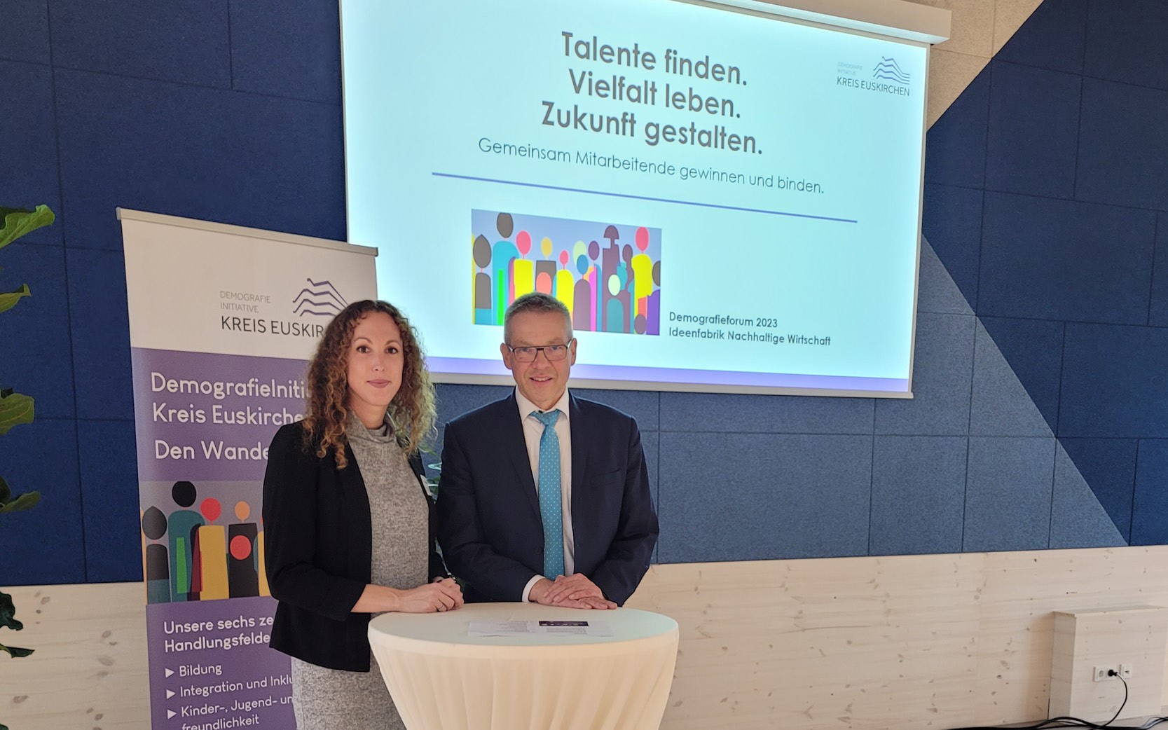In diesem Jahr fand das Demografieforum in der Ideenfabrik Nachhaltige Wirtschaft in der Alten Tuchfabrik in Euskirchen statt. In diesem Jahr hieß das Motto: Talente finden. Vielfalt leben. Zukunft gestalten. Gemeinsam Mitarbeitende gewinnen und binden.